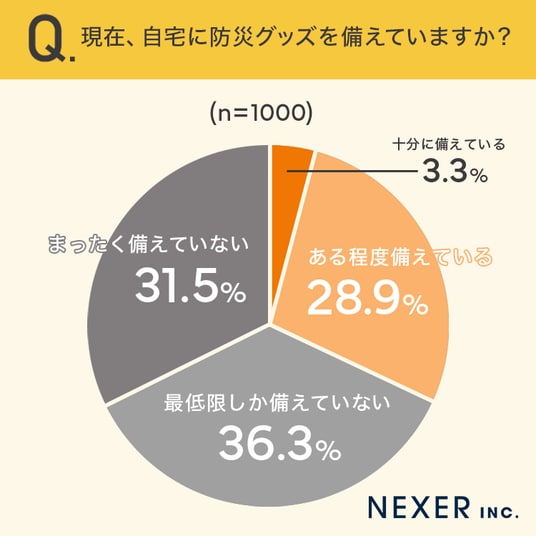 約7割の方が防災グッズを「最低限以下」しか備えられていない現状が明らかになりました。