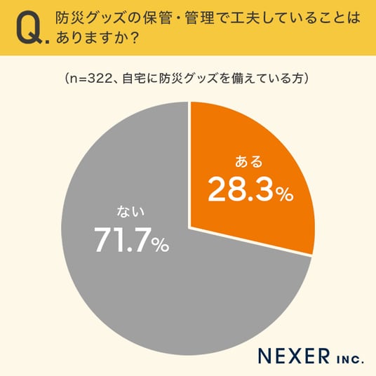 ■28.3%が、防災グッズの保管・管理で工夫していることが「ある」
