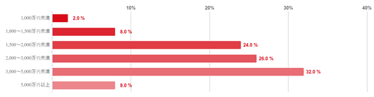 老後資金に必要だと思う金額について、「3,000~5,000万円未満」という回答が32.0%で最も多く、次いで「2,000~3,000万円未満」が26.0%、「1,500~2,000万円未満」が24.0%と僅差で続いた。