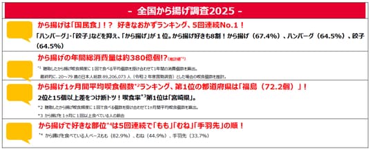 <全国から揚げ調査2025>から揚げが「好きなおかずランキング」1位を達成!年間総消費量は380億個超(推計値)!多岐に渡るから揚げを食べている「福島県」が県別ランキングで初の1位に!