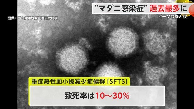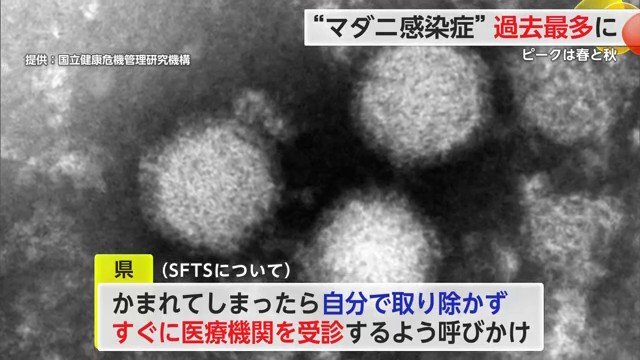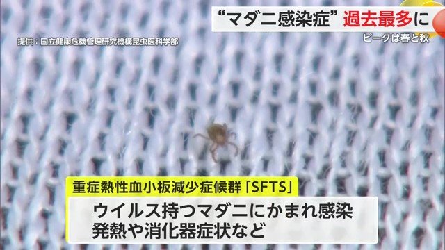 マダニが媒介する感染症「SFTS」の感染者が増加している。佐賀県では感染者が過去最多となった。マダニのピークは春と秋。県は、かまれた場合には自分で取り除かず、速やかな医療機関の受診を呼びかけている。