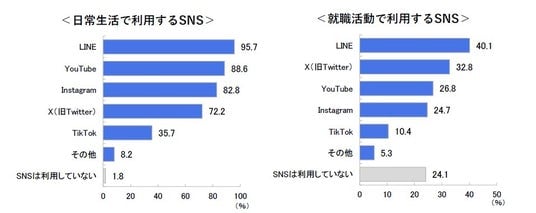 ○就活でのSNS利用、「LINE」が4割で最多(40.1%)。「X(旧Twitter)」が3割台で次点