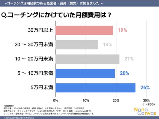 【調査対象:30~59歳の経営者・役員265名(男女)/コーチング活用経験者】