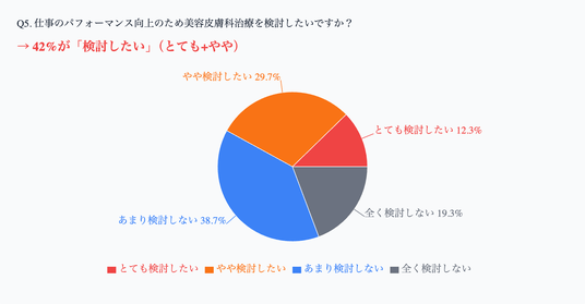 仕事のパフォーマンスを上げるために、美容皮膚科での治療を検討したいと思うか調査しました。