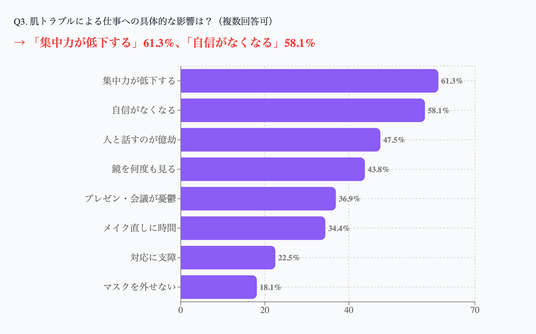 肌トラブルによる仕事への影響は「集中力の低下」が最多