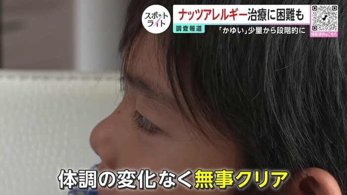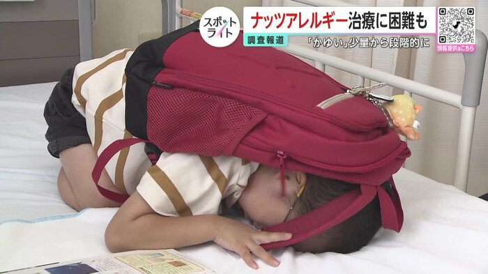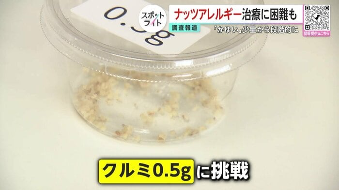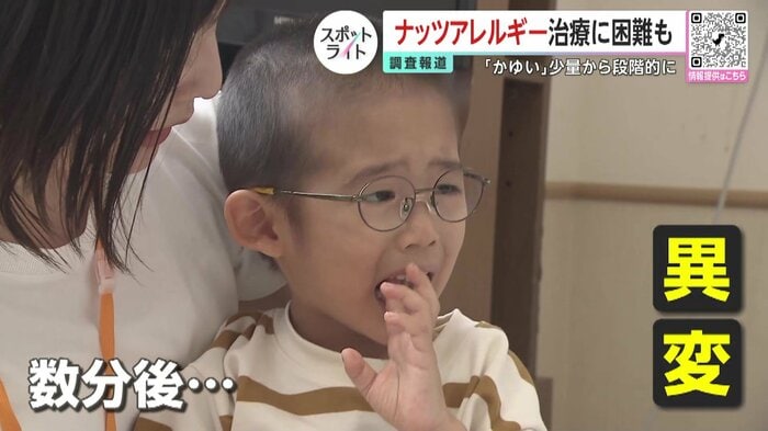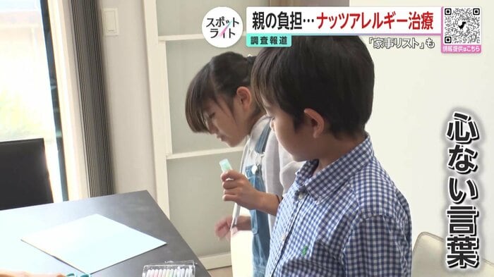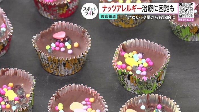 この日、男の子は少しずつ食べることで、アレルギーの克服を目指す「経口免疫療法」のため、家族でクルミ入りのチョコレートを作っていた。