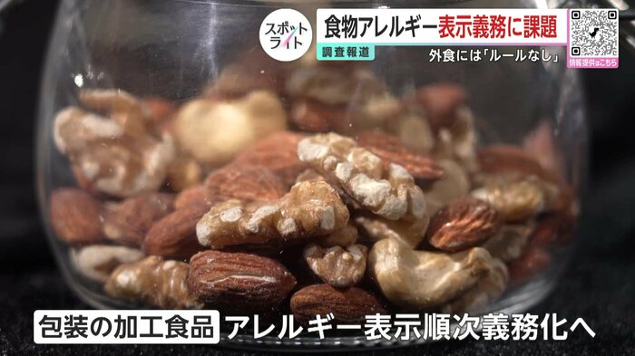 パッケージに入った食品のアレルギー表示については、順次、義務化が進んでいるが、外食やケーキのように店内で作って提供する食品には表示の義務はない。