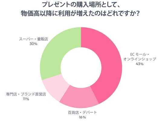 物価高以降に利用が増えた場所は、「ECモール・オンラインショップ」43%が最多でした。