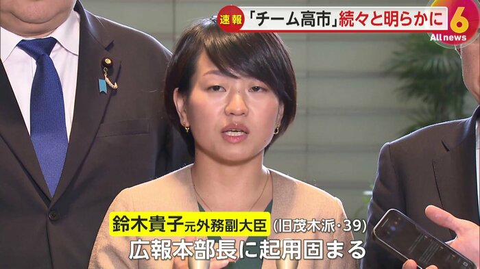 一方で、旧茂木派で39歳の鈴木貴子氏を、広報本部長に起用する方針を固めた。