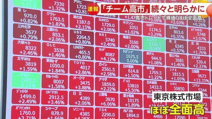 自民党・高市新総裁誕生を受け、週明けの東京株式市場は“ほぼ全面高”の展開に。