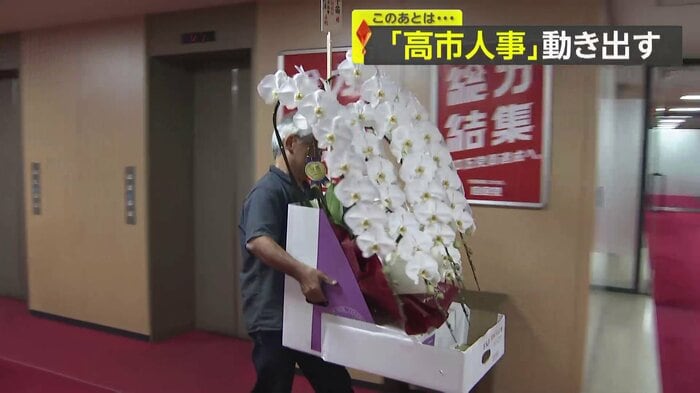 記者リポート:自民党の総裁室には続々とお祝いの胡蝶蘭が運び込まれています