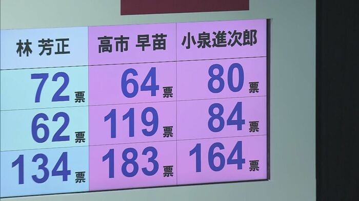 全国的にも党員からは高市氏が多くの支持を集めるなか、事前の予想通り、1回目の投票では決着がつかず、議員票でトップの小泉氏と、党員票でトップの高市氏の決選投票になりました。