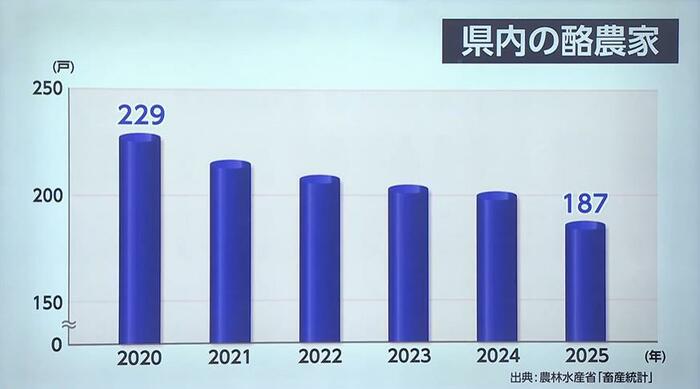 生産者の高齢化なども相まって、県内の酪農家の数は減少の一途をたどっている。