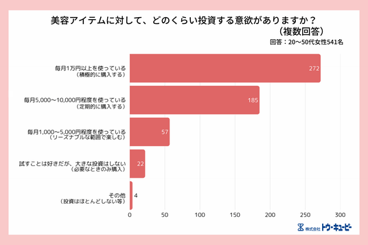 Q4.美容アイテムに対して、どのくらい投資する意欲がありますか?