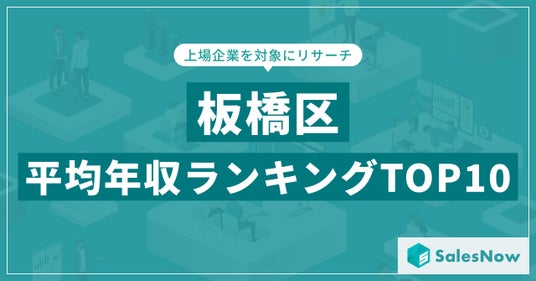 株式会社SalesNow(本社:東京都渋谷区、代表取締役:村岡功規、以下「当社」)は、国内540万社の企業情報を完全網羅した日本最大級のデータベース「SalesNow DB」より、上場企業を対象とした「市区町村別の平均年収ランキング」を発表しました。本リリースでは、各都市別のデータをもとに、今回は「板橋区に本社を置く企業」を対象に、平均年収にフォーカスしています。