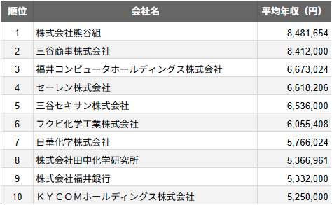 株式会社SalesNow(本社:東京都渋谷区、代表取締役:村岡功規、以下「当社」)は、国内540万社の企業情報を完全網羅した日本最大級のデータベース「SalesNow DB」より、上場企業を対象とした「市区町村別の平均年収ランキング」を発表しました。本リリースでは、各都市別のデータをもとに、今回は「福井市に本社を置く企業」を対象に、平均年収にフォーカスしています。