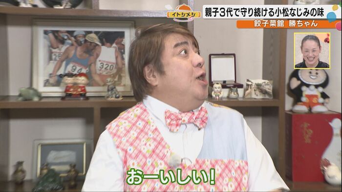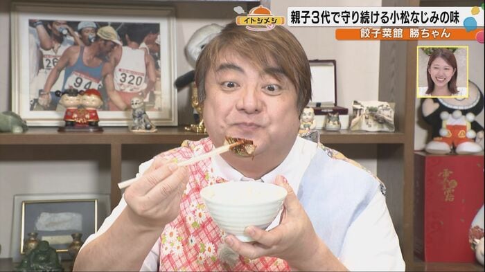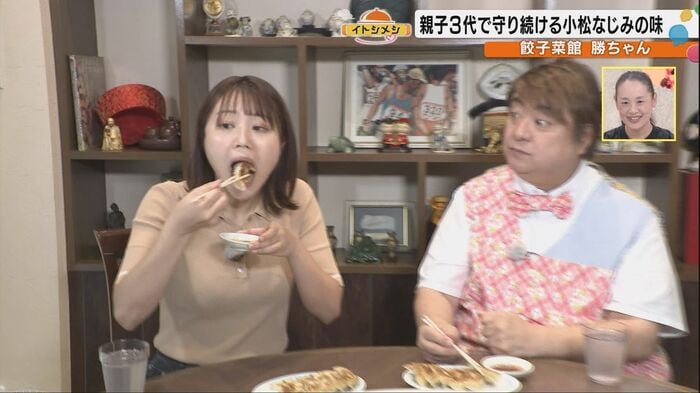 彦摩呂さん「この餃子うんまい!ちょっと食べてみて」と沼本アナにも食べるよう勧める。