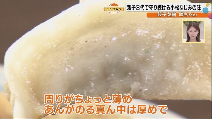 沼本アナも一口で「うんーー、肉汁が出てきて皮の厚さもちょうどよいですね、パリパリ感ともちもち感の両方味わえますね!」