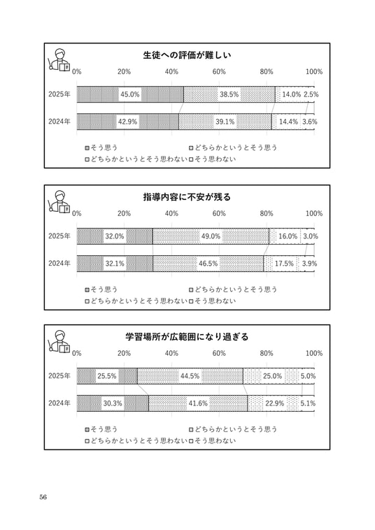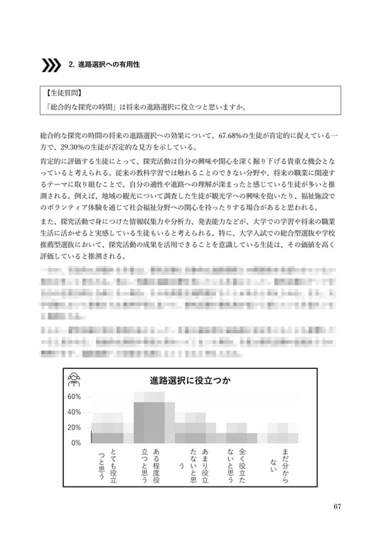 また、探究学習の実施上の課題として指摘される授業時数の問題や成績評価の在り方、他の学習活動との時間配分についても、現場の声を反映した実証的な分析を行っています。これらの課題解決に向けた示唆を提供することで、より効果的な探究学習の実現を支援します。