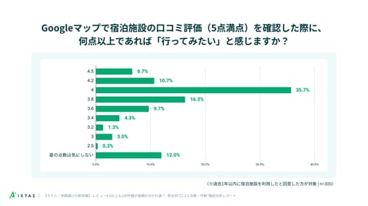 ・宿泊施設選びの際、53.1%の人が Googleマップの口コミ評価「4.0点以上」 を重視している