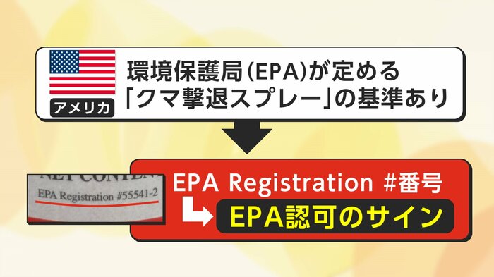 クマスプレーは現在、ホームセンターなどで購入できるが、環境省によると、国内では明確な規制がない。アメリカは環境保護局(EPA)が定める基準がある。選ぶ際は、EPA認可のスプレーが一つの目安となる。