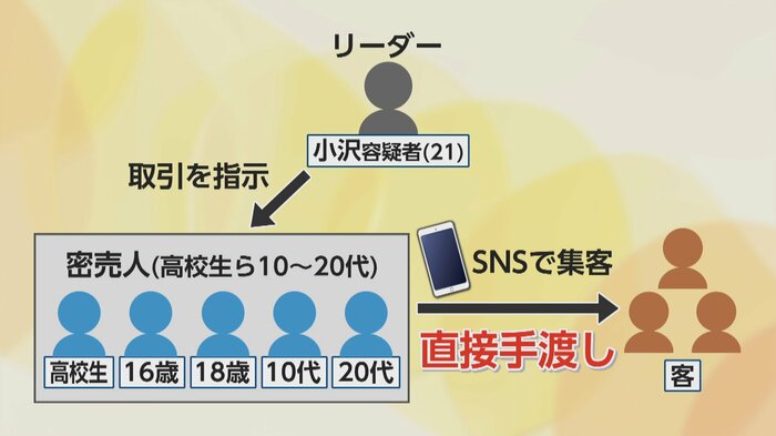 密売グループは小沢容疑者と10代から20代の6人で構成されていた。小沢容疑者が16歳の少年や高校生らを密売人として使い、一連の取引を指示していたという。