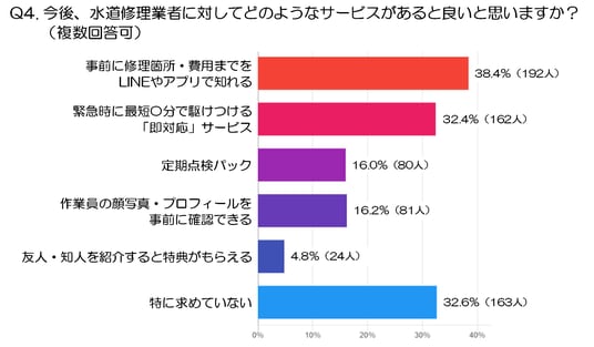 Q4. 今後、水道修理業者に対してどのようなサービスがあると良いと思いますか?(複数回答可)