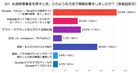 Q1. 水道修理業者を探すとき、どのような方法で情報収集をしましたか?(複数回答可)