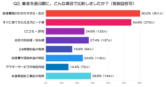 Q2. 業者を選ぶ際に、どんな項目で比較しましたか?(複数回答可)