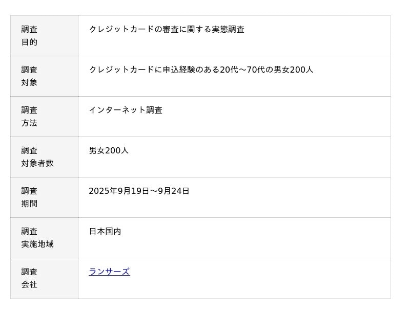 本調査を通じて、審査体験を可視化し、今後クレジットカードを検討する方々にとって参考となる知見を提供することを目的としています。