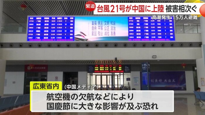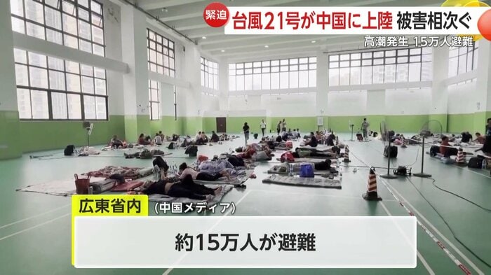 中国メディアは、台風21号の影響により広東省内で約15万人が避難したと報じている。