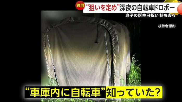 ガレージは、扉が閉まったテントタイプだったが、犯人は中に自転車があることを知っていたのか。住人は警察に被害届を提出したという。