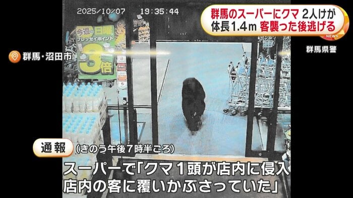 群馬・沼田市のスーパーにクマが侵入し、買い物客の男性2人がクマに襲われけがをしました。