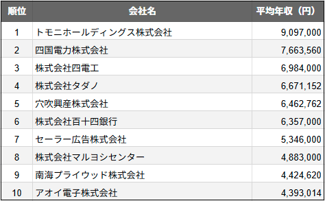 株式会社SalesNow(本社:東京都渋谷区、代表取締役:村岡功規、以下「当社」)は、国内540万社の企業情報を完全網羅した日本最大級のデータベース「SalesNow DB」より、上場企業を対象とした「市区町村別の平均年収ランキング」を発表しました。本リリースでは、各都市別のデータをもとに、今回は「高松市に本社を置く企業」を対象に、平均年収にフォーカスしています。