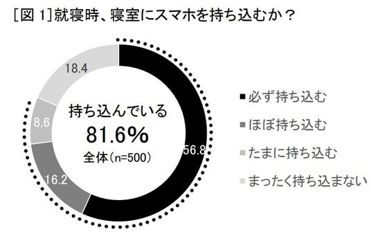 1. スマホ利用者の81.6%が寝室にスマホを持ち込み、65.2%がスマホ利用による夜ふかしを経験