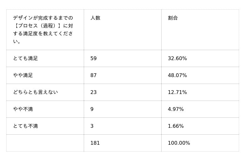 【質問3.】デザインが完成するまでの【プロセス】に対する満足度を教えてください。