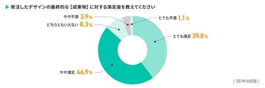 外注デザインに対する満足度は、「とても満足」39.78%と「やや満足」46.96%を合わせて、合計86.7%に達しました。