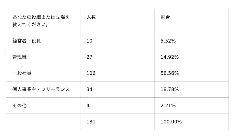 【 調査概要 】あなたの性別・年齢・業種・従業員規模・役職について教えてください。