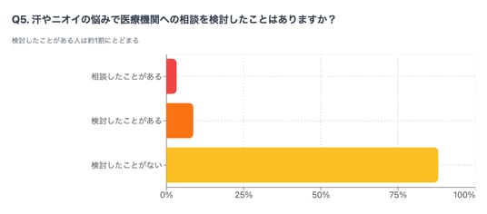 汗やニオイの悩みで美容皮膚科などの医療機関への相談を検討したことがあるか調査しました。