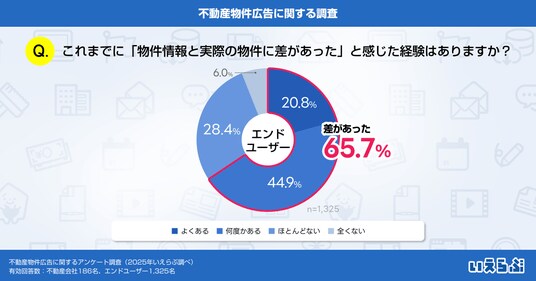 エンドユーザーへの「物件情報と実際の物件に差があったことはありますか?」という質問では、「よくある」が20.8%、「何度かある」が44.9%となりました。