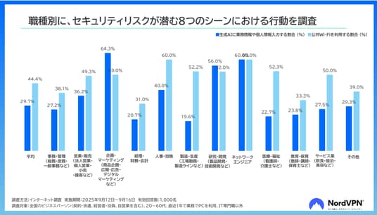 【Topic3:「企画・マーケティング職」は生成AIの利用が平均の約2.3倍、「人事・労務職」は公共Wi-Fiの利用が平均の12.7ポイント増】