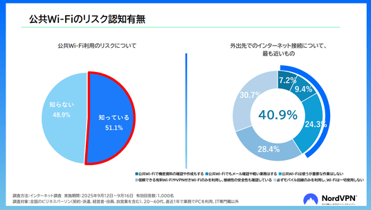 個人向けセキュリティサービスを提供するNordVPN(本社:オランダ・アムステルダム、日本代表:小原拓郎)は、全国のビジネスパーソン1,000名を対象に「ビジネスパーソンの無意識な行動に潜むセキュリティリスクに関する調査」を実施しました。
