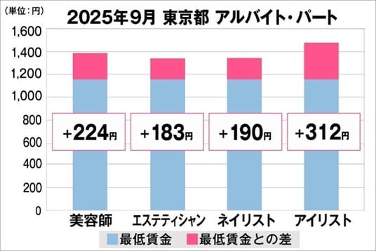 東京都の美容業界における採用時給料に関する調査結果(アルバイト・パート)2025年9月美プロ調べ