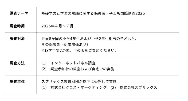 スプリックス教育財団 基礎学力と学習の意識に関する保護者・子ども国際調査2025