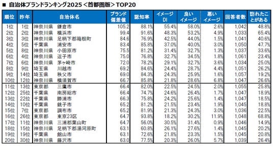 大東建託株式会社(本社:東京都港区、代表取締役 社長執行役員 CEO:竹内啓)は、18万人を超える回答を集めた大規模なブランド調査を行い、「いい部屋ネット 自治体ブランドランキング2025<首都圏版>」として集計しました。