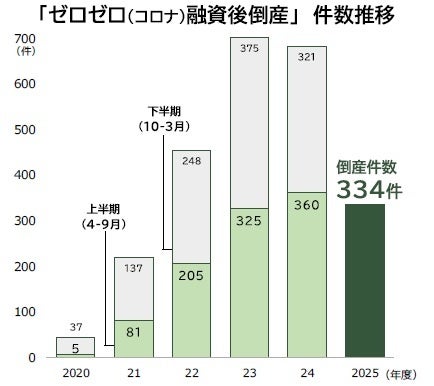 ■ 「ゼロゼロ(コロナ)融資後倒産」は334件判明し、上半期としては初めて前年を下回った