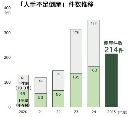 ■ 「人手不足倒産」は214件判明し、過去最多を更新した