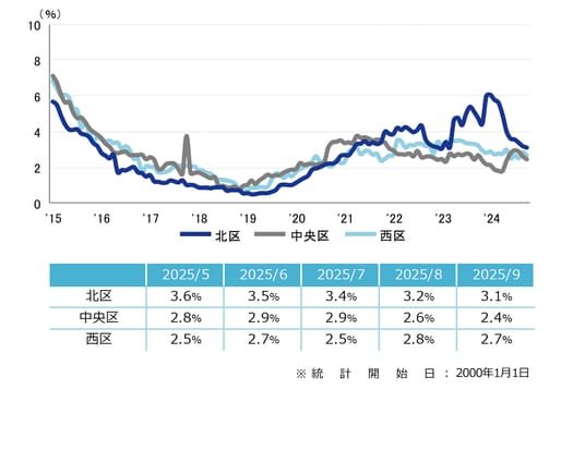 空室率 3ヵ月連続で低下 「北区」2022年1月以来の2%台が目前