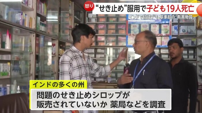この事件を受け当局は、インドの多くの州で、問題の咳止めシロップが販売されていないか、薬局などの調査に乗り出している。
