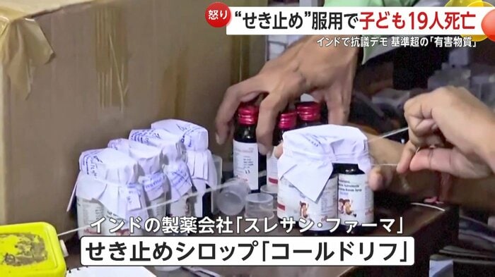 ロイター通信によると、死亡した子供たちはほとんどが5歳未満で、服用していたのはインドの製薬会社「スレサン・ファーマ」が製造した咳止めシロップ「コールドリフ」だという。